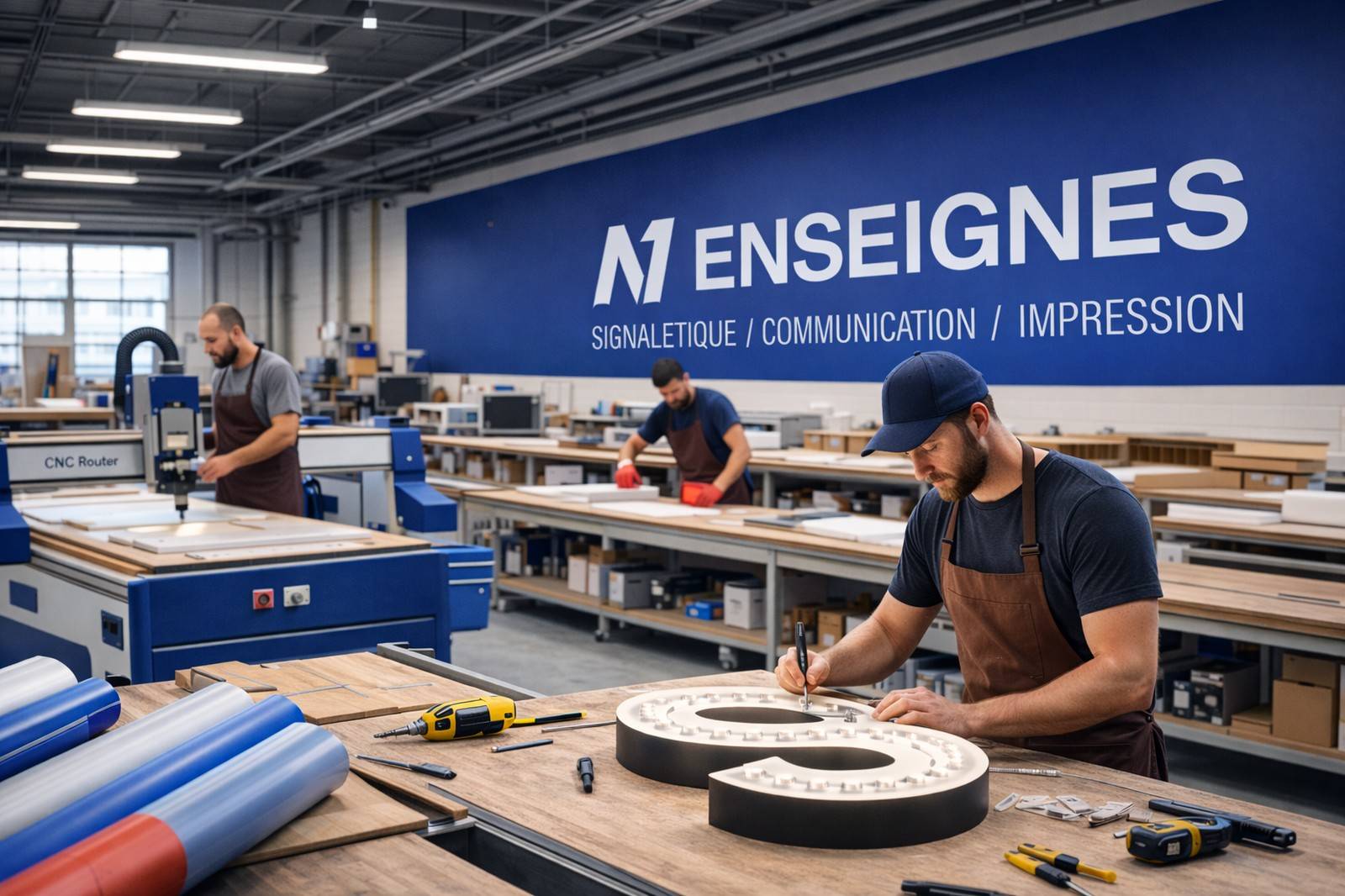 Notre cœur de métier est la création d'enseignes lumineuses haut de gamme. Nous comprenons l'importance d'une signalisation efficace pour attirer l'attention et communiquer votre message. Que vous ayez besoin d'une enseigne lumineuse à LED pour votre magasin, d'un panneau publicitaire pour votre entreprise ou d'une bâche publicitaire pour un événement, nous avons les compétences et l'équipement nécessaires pour répondre à vos besoins. Nous proposons également des services de création graphique pour vous aider à concevoir une enseigne qui reflète parfaitement votre marque.