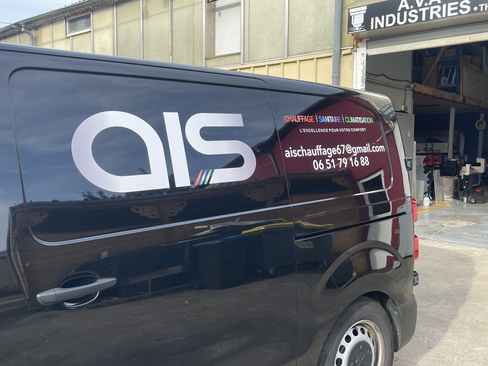 Conception graphique, Impression et pose des adhésifs pour ce véhicule professionnel sur Strasbourg.