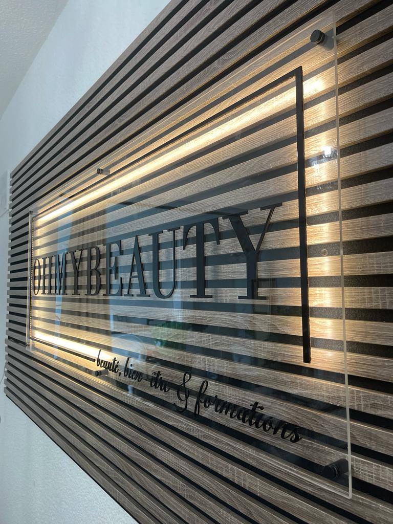 Chaque détail de l'enseigne est pensé pour refléter la sophistication du salon. Les jeux de lumières subtils ajoutent une touche chaleureuse, créant une ambiance accueillante pour les clients. Notre enseigne devient ainsi plus qu'un simple repère ; elle devient une expérience visuelle qui évoque la détente et la beauté.