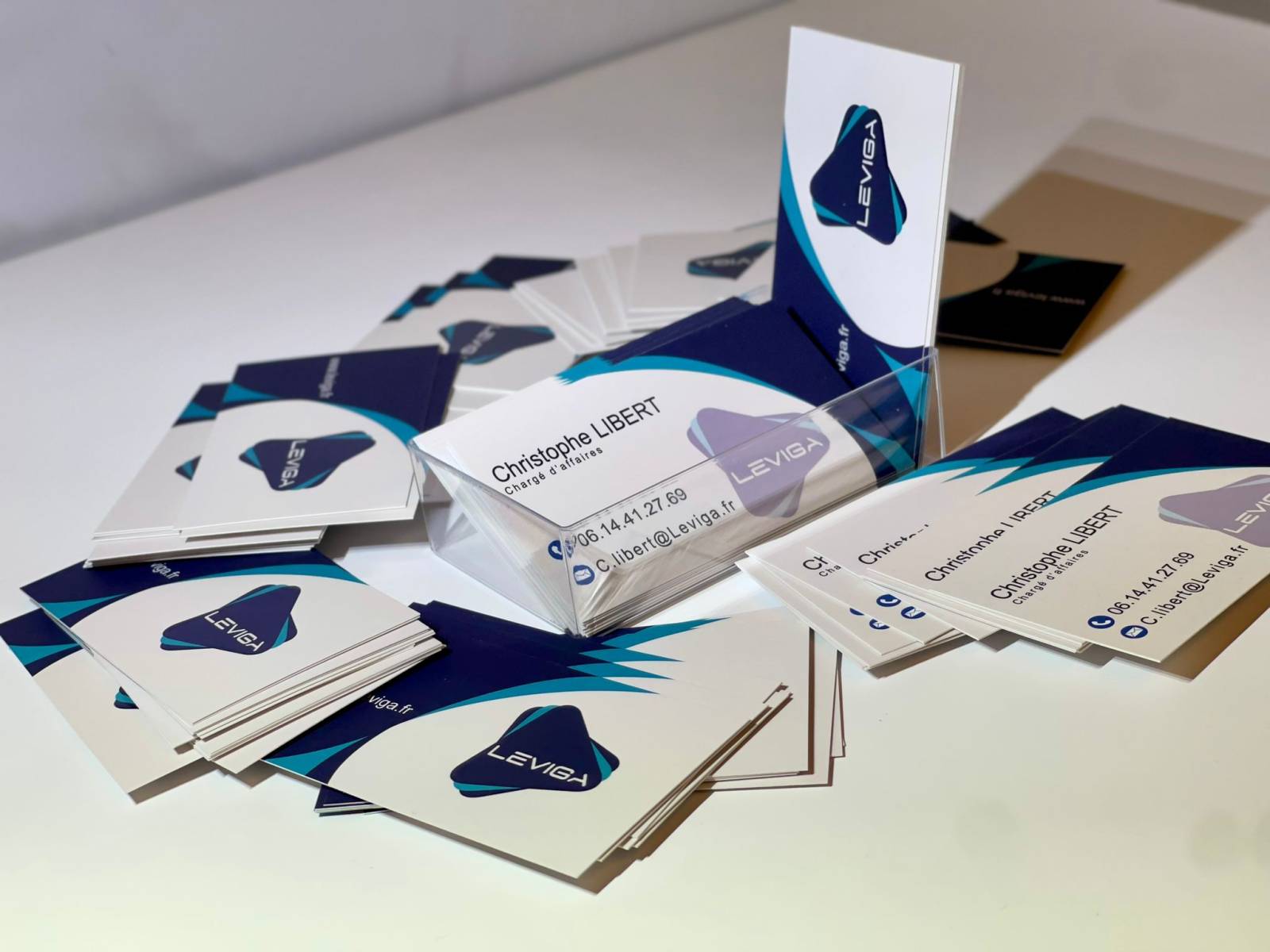 Design élégant et impression de qualité cartes de visite pour l'entreprise Leviga situé à Metz proche de Strasbourg